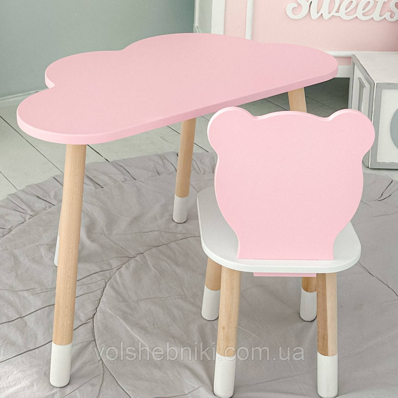 Стіл тучка і стільчик дитячий рожевий медвежа з білим сидінням. Столик для занять, ігор, їжі
